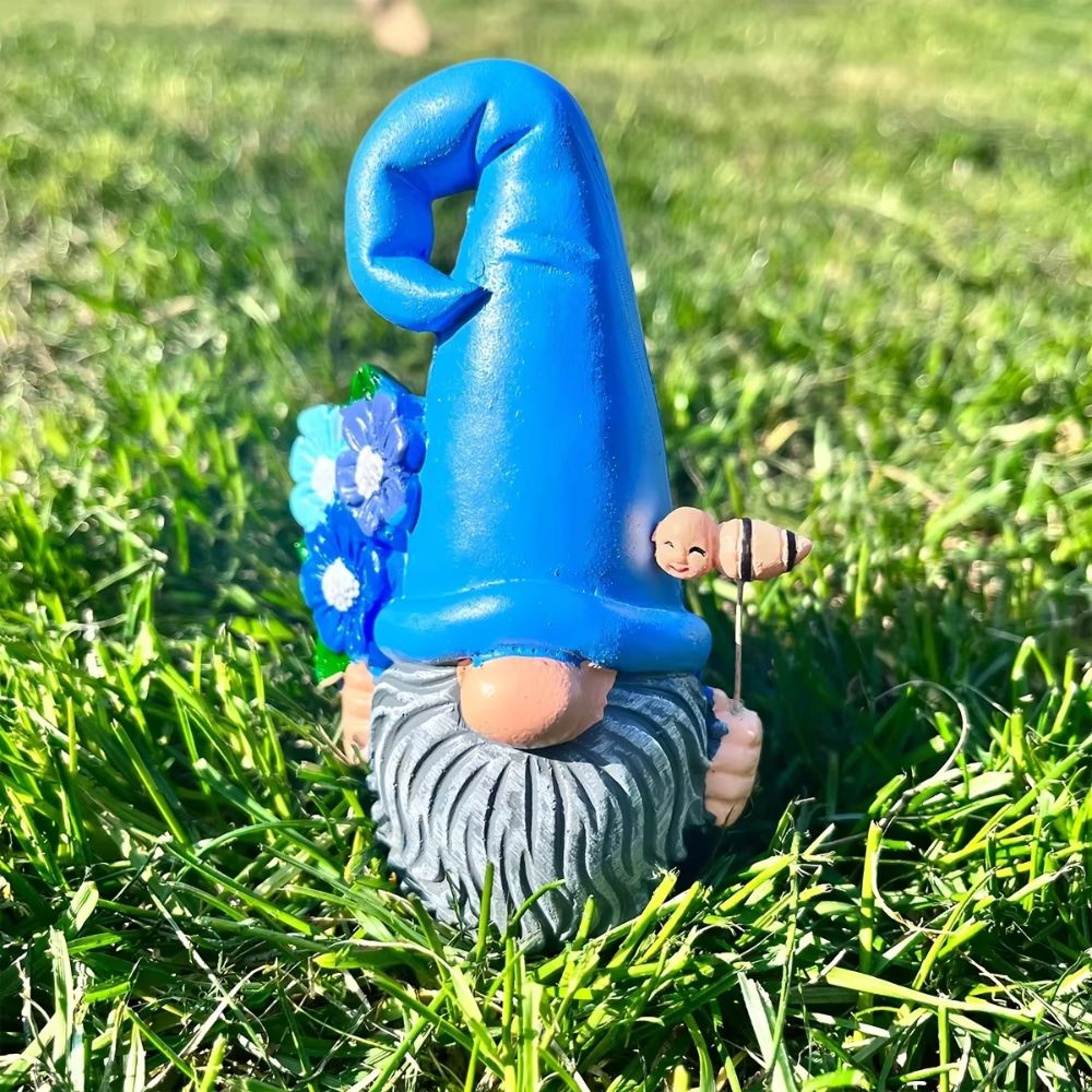 Avec son grand bonnet bleu enroulé, ses fleurs détaillées sur le côté et son regard espiègle dissimulé sous une barbe touffue, ce gnome incarne l’équilibre parfait entre humour et esthétisme. Un choix idéal pour les amateurs de déco originale à petit format.